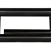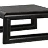A sculptural square coffee table with a Matte Black iron frame features a bold geometric silhouette, a cantilevered top, and rounded tubular supports. Its minimalist design adds dynamic balance and modern sophistication to contemporary interiors.