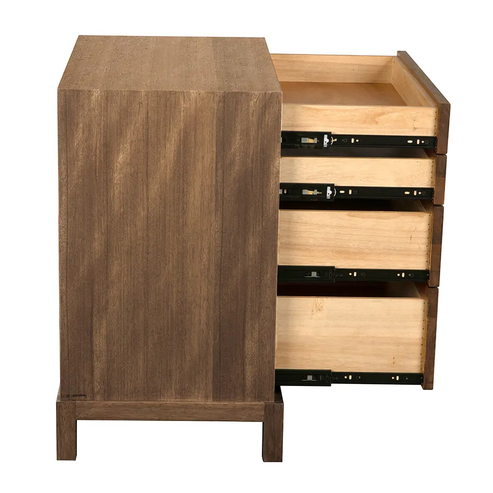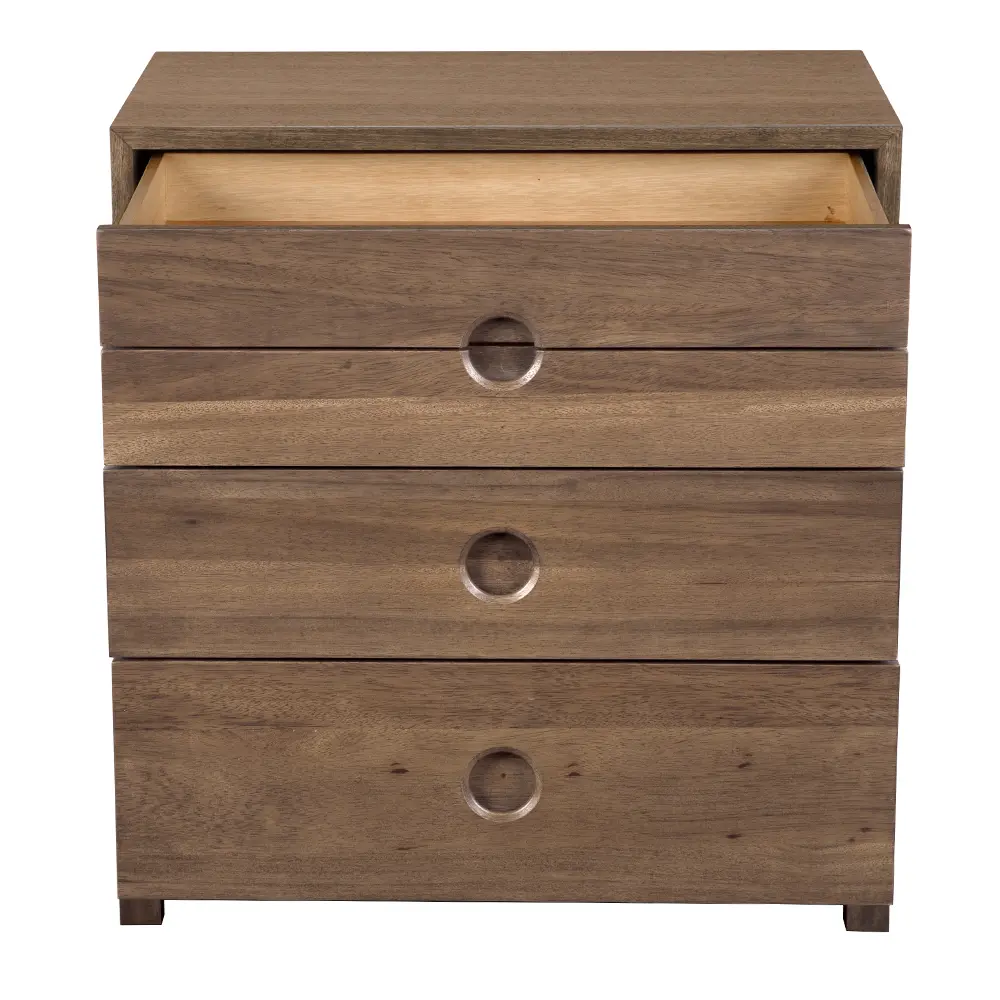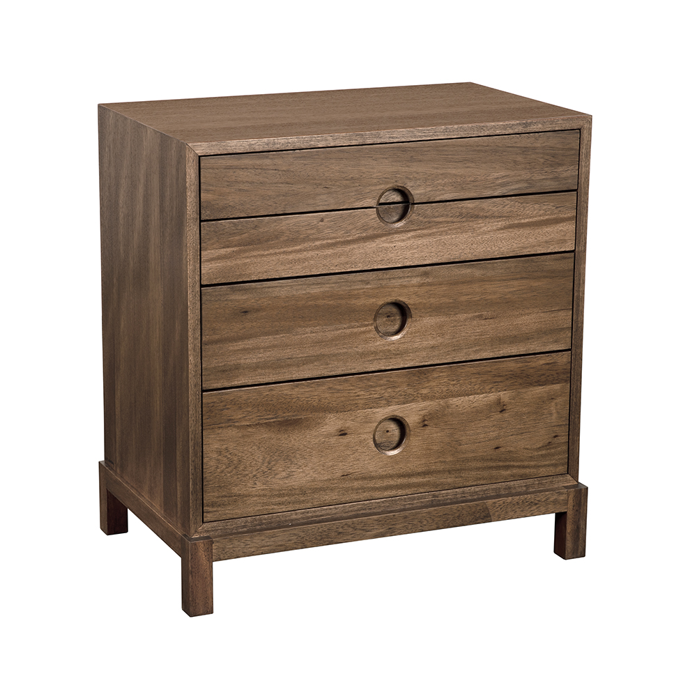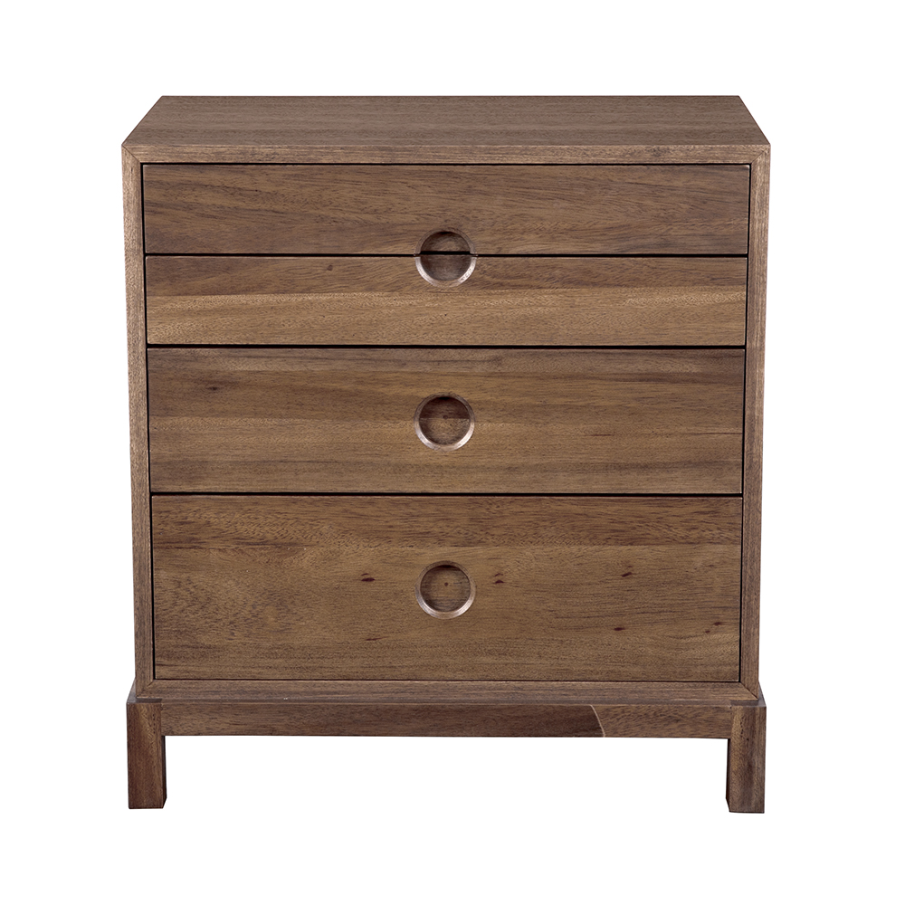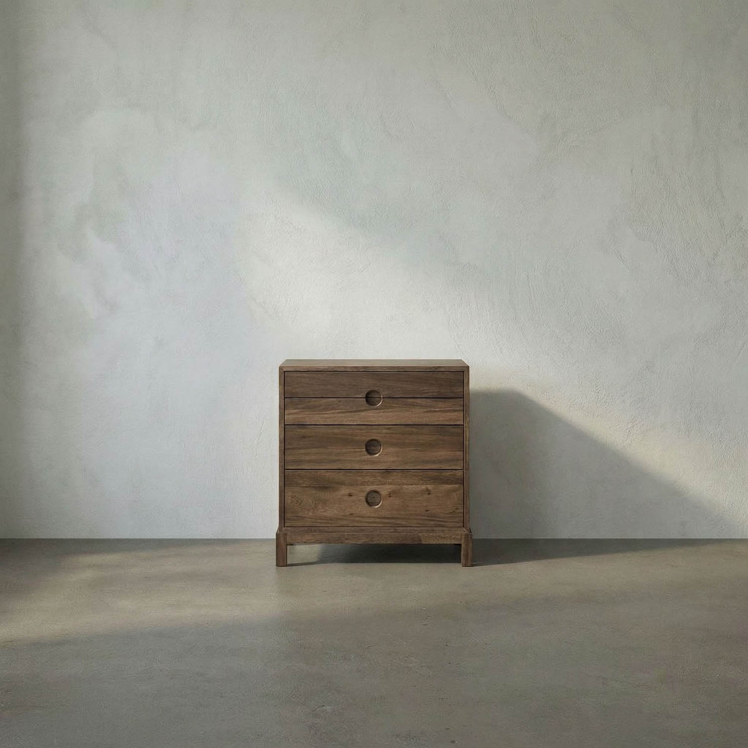 This three-drawer chest features our warm Dark Walnut finish, sculpted handles, and balanced proportions. Set on a simple base, it provides subtle storage and a classic look that fits well in modern, layered spaces.
