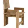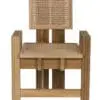 The Fatima Chair features bold, geometric wood framing paired with airy woven cane. Its blocky form evokes an architectural feel, while the cane adds warmth and breathability–a modern nod to traditional craftsmanship.