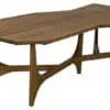 The Fenton Coffee Table in Gold Teak showcases a sculptural, asymmetrical design with a golden finish that highlights the natural grain of the wood, making it a striking centerpiece for modern interiors.