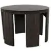 This round side table has a Pale finish with Light Brown trim and a fluted, detailed base. Its sculptural and textured form, along with the carved top details, creates a refined accent piece for contemporary and transitional interiors.
