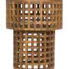 A handsome round side table, the solid Teak wood is intricately handcrafted into a grid cage design, adding graphic flair and warmth to any space.