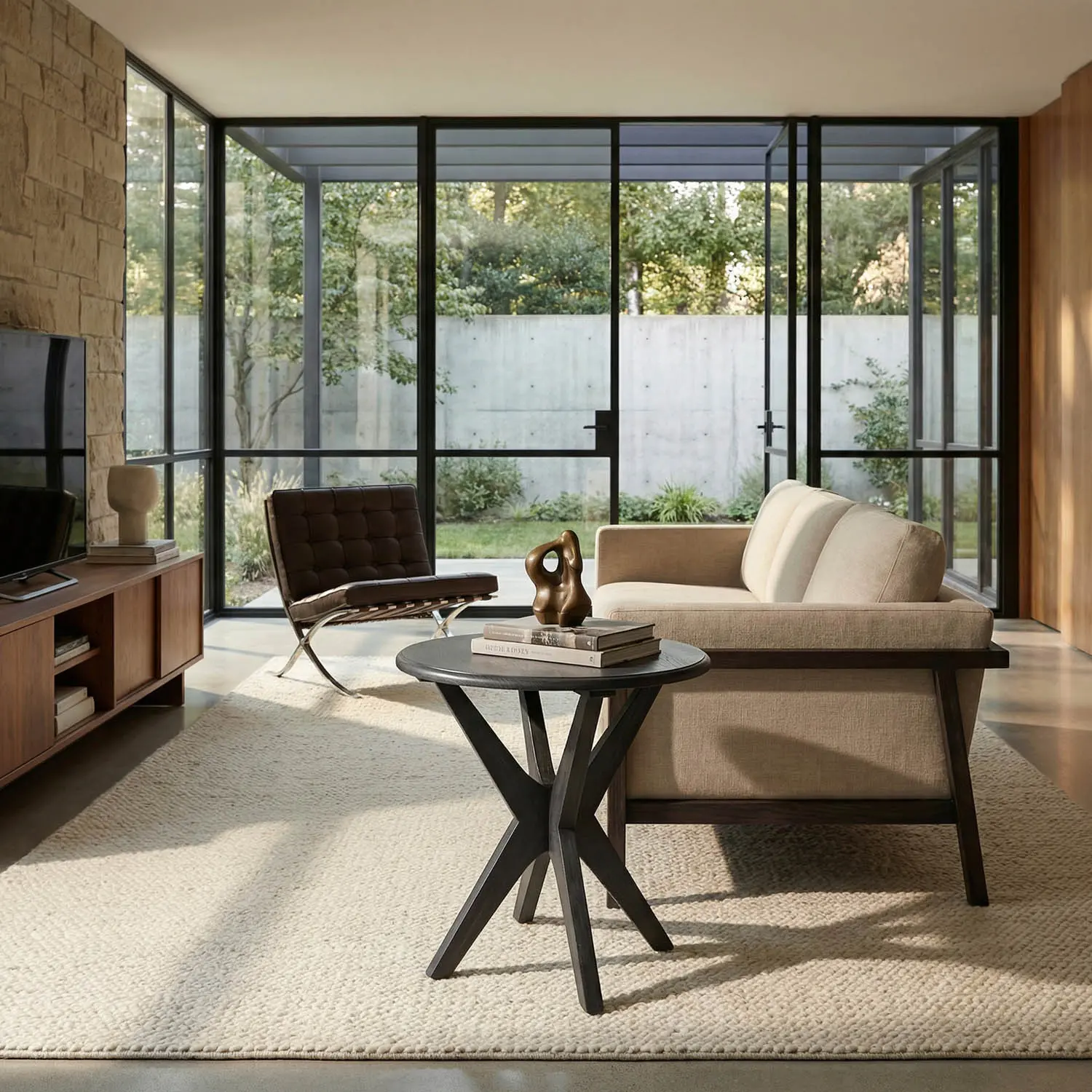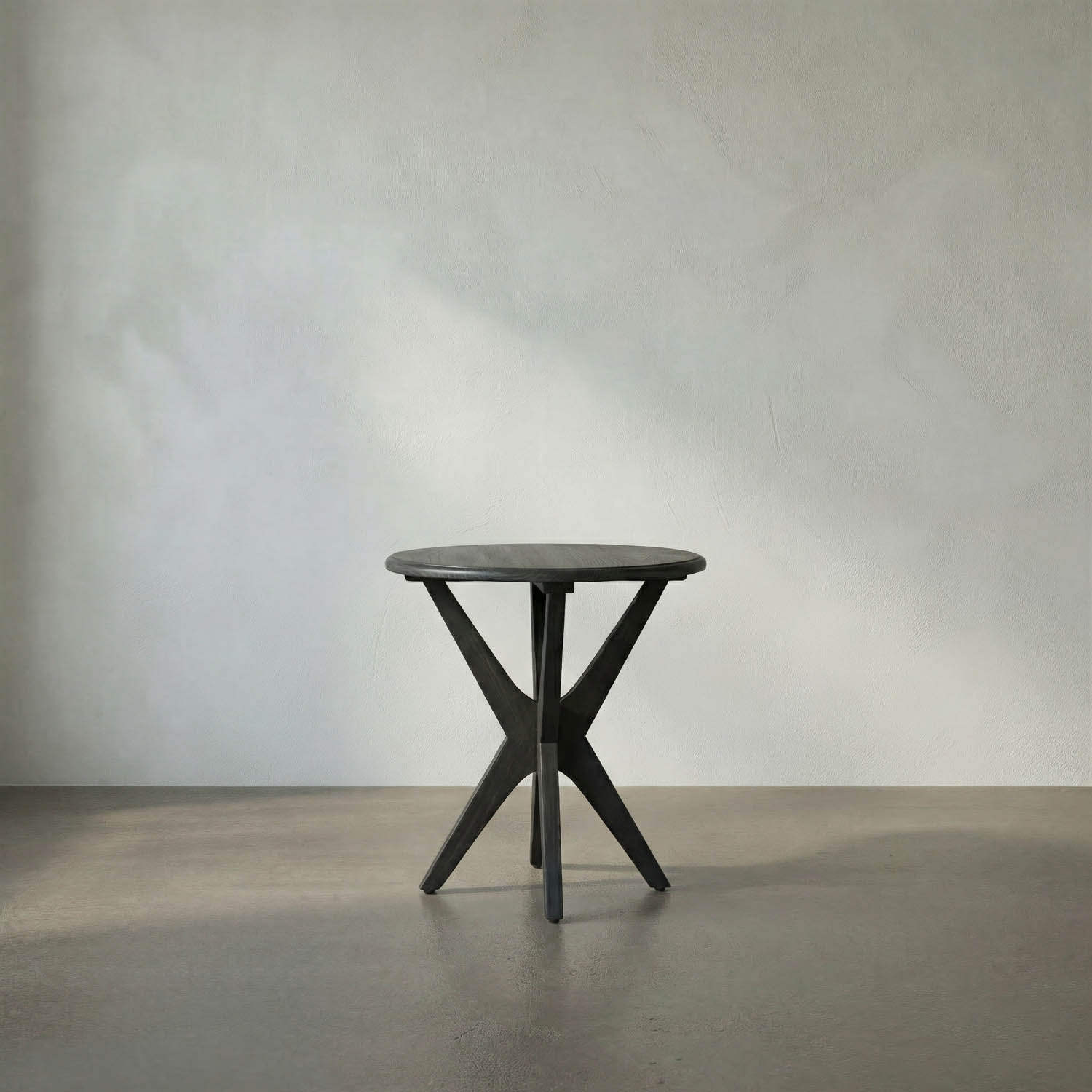 This simple and modern round side table is carved of Mindi Wood and hand-finished in our Charcoal Black finish. The clean lines and easy shape make it the perfect addition to nearly any interior.