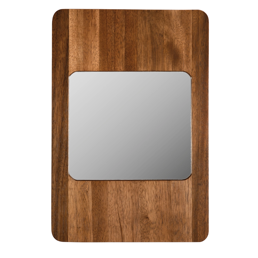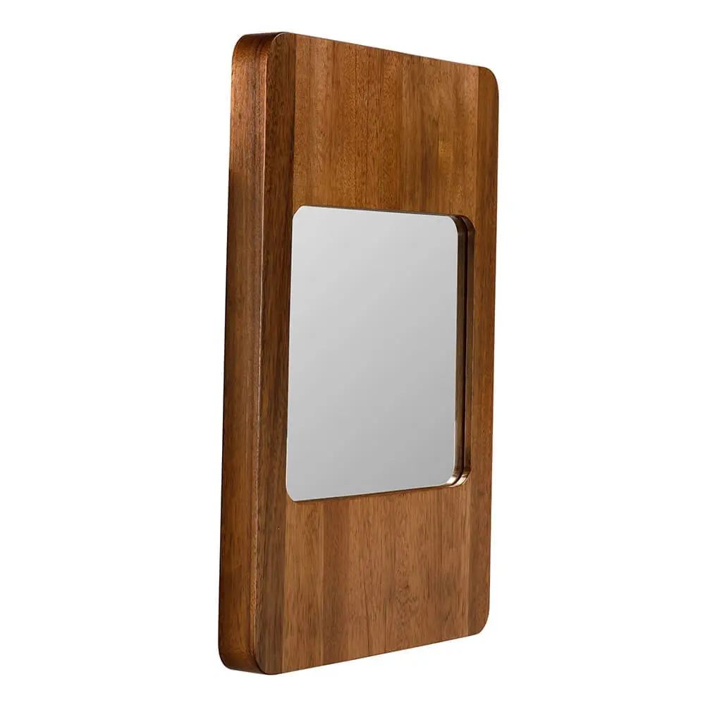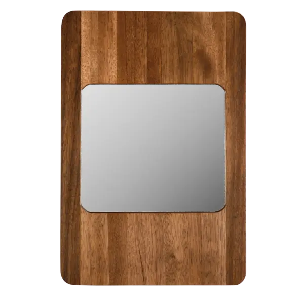 This wall mirror features a sleek rectangular design with rounded corners and a rich wood frame. Its minimalist aesthetic blends mid-century and modern styles, making it ideal for contemporary or Scandinavian-inspired interiors. Includes a French cleat.