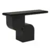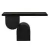 The matte black Fraser Console showcases bold curved opposing “U” iron bases and a cantilevered top, creating a sleek, sculptural design that blends industrial strength with modern design.