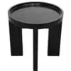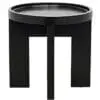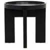 This side table features a circular tray top supported by four interlocking legs. Made from mahogany in our Hand-Rubbed Black finish, it combines modern design with traditional materials, offering compact and versatile functionality.