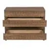 The Regent Sideboard features our Dark Walnut Finish, four spacious drawers, and subtly rounded corners on minimalist legs. Its mid-century modern design blends sleek style with practical storage for contemporary spaces.