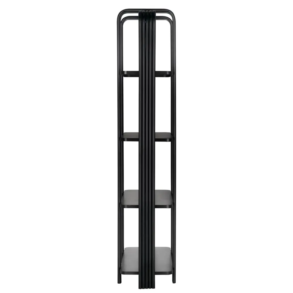 The four-shelf Giza Bookcase features a bold, architectural silhouette defined by ribbed vertical supports that curve smoothly over the top. The rounded contours contrast with its strong linearity, creating a sense of rhythm and flow.