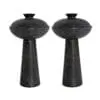 Natural, solid black marble, unique to each piece, is artfully carved into elongated pedestal vessels inspired by traditional Japanese lacquerware, specifically the ÒShiruwanÓ lidded (removable) bowls- set of two.