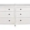 The Hampton Six Drawer Dresser pairs classic proportions with a modern edge. A White-Wash finish softens the mahogany grain, while six clean-lined drawers with solid brass pulls deliver grounded, functional design.