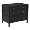The Hampton Side Table pairs classic proportions with a modern edge. A Hand-Rubbed Black finish deepens the mahogany grain, while three clean-lined drawers with solid brass pulls deliver grounded, functional design.