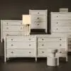 The Hampton Side Table pairs classic proportions with a modern edge. A White Wash finish softens the mahogany grain, while three clean-lined drawers with solid brass pulls deliver grounded, functional design.