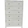 The Hampton Tall Boy pairs classic proportions with a modern edge. A White Wash finish softens the mahogany grain, while six clean-lined drawers with solid brass pulls deliver grounded, functional design.