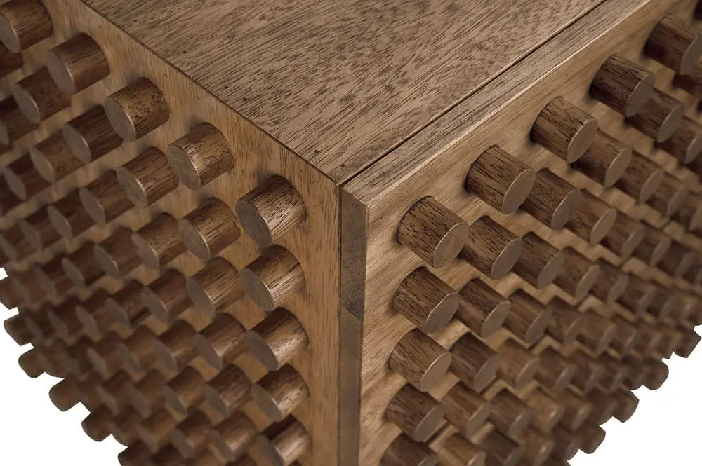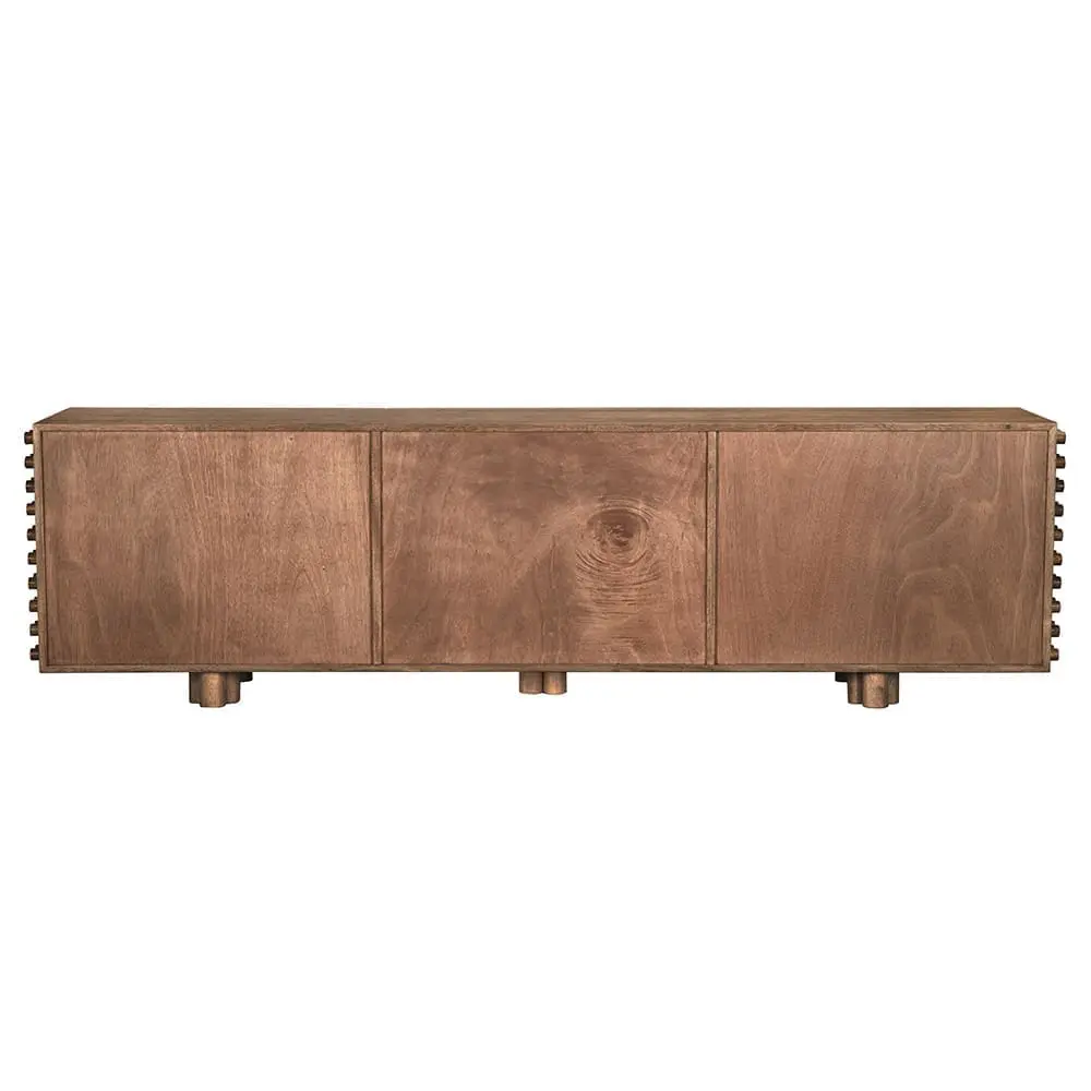 This oversized walnut buffet/dresser boasts six drawers with oversized dowel reliefs on three sides, providing ample storage while making a striking statement with its sculptural and architectural design in our Dark Walnut finish.