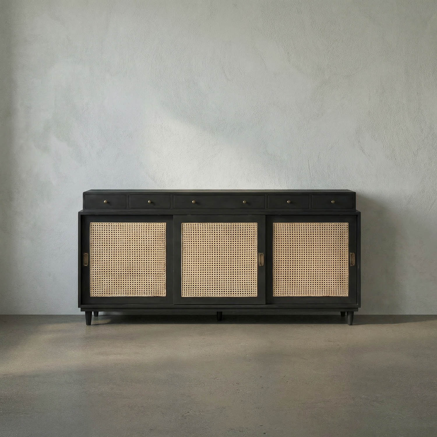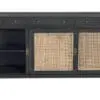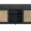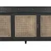 Crafted from mahogany and finished in our warm, Pale finish, this oversized console features caned cupboards, stepped drawers, and mid-century-inspired legs. It includes five drawers and spacious interior compartments, making it a stylish storage solution for any room in the home.