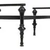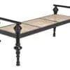 The charcoal black Indochine Bench showcases timeless charm with its elegantly turned legs and sculptural armrests. The seat, made from handwoven cane and framed in three distinct panels, contrasts beautifully with the bold frame.