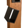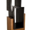This sculptural shelving unit features staggered Charcoal Black rectangular frames anchored in a natural teak base. Its dynamic, asymmetrical composition creates a visual rhythm while providing vertical display space, making it ideal for bold, modern interiors or galleries.