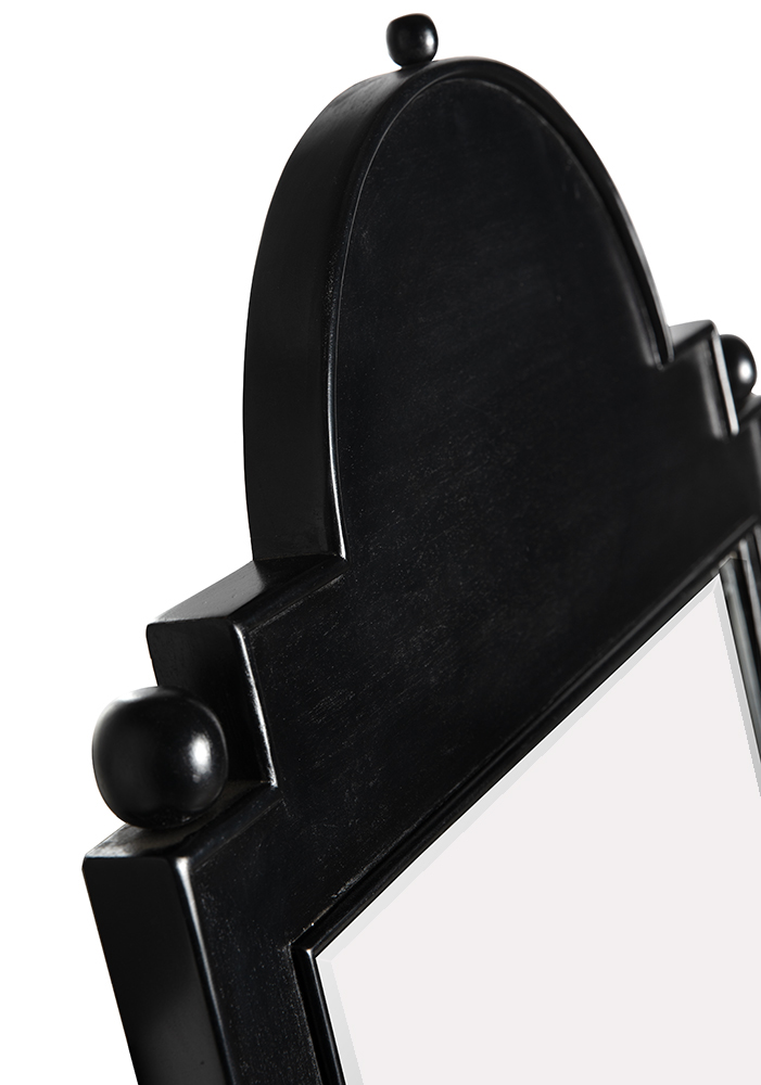 Jess Mirror features a mahogany frame in our Hand-Rubbed Black finish, showcasing a bold, rectangular silhouette topped by a gentle arch. Its lightweight and sleek design adds minimalist charm to any modern interior.