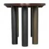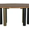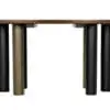 An oval dark walnut-finished table with sculptural columnar legs in matte black and aged brass – a post-modern design that blends warm wood tones with bold metal accents, perfect for modern, minimalist, and industrial interiors.