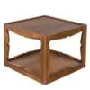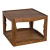 The Kabbal Side Table garners attention with its asymmetrical, stacked-block design, hand-carved from teak and lightly finished. Its form evokes a sense of grounded monumentality, blending raw craftsmanship with a minimalist, sculptural edge.