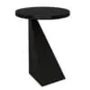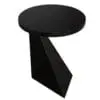 A Matte Black finished iron side table with bold, sculptural geometry, evoking minimalist architectural forms and contemporary gallery aesthetics.