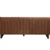 This modern tuxedo sofa in Orris Brown Leather features a dark walnut sled-leg that subtly elevates the channeled upholstery. The leg design adds visual lightness and enhances the tailored silhouette.