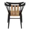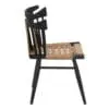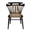 The Kiki Chair is a modern rustic piece crafted with a wooden frame in our Charcola Black finish. It features a woven rope seat and backrest, showcasing sculptural details. It is an ideal choice for both dining and accent roles.