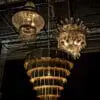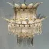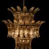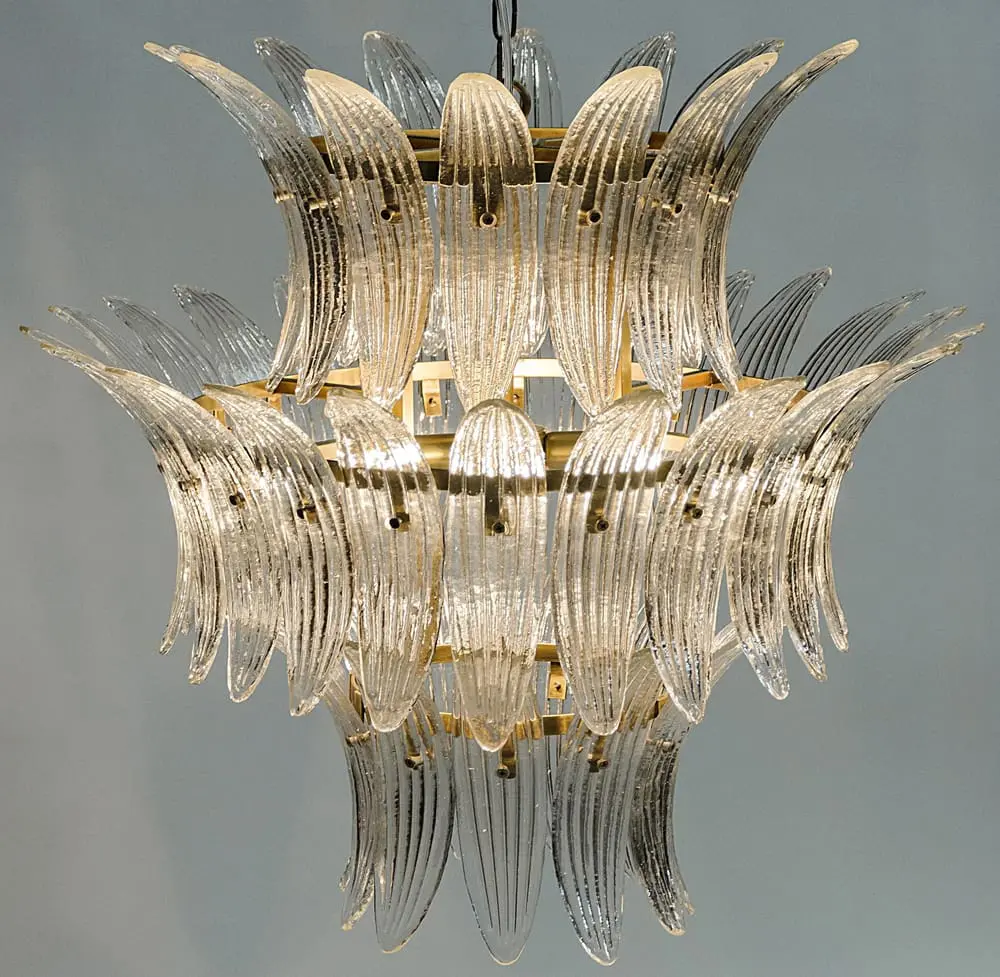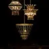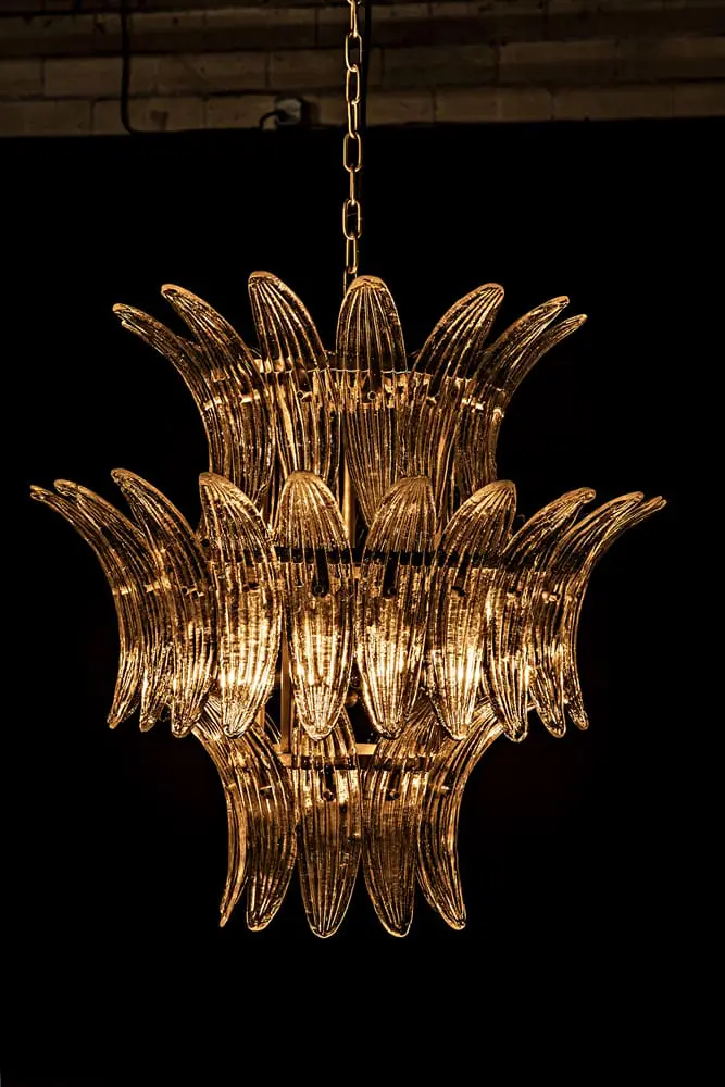 The King Chandelier presents tiered, textured glass crystals on an antique brass frame, offering a grand yet refined focal point that evokes timeless sophistication.