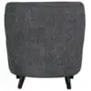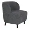 An armless accent chair that features a clean, yet boxy silhouette with a slightly curved backrest. Upholstered in dark gray fabric, it offers a plush, modern look, supported by sleek, tapered black legs.