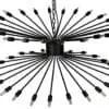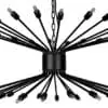 The Lampberto Chandelier features two rings of black iron spokes forming a bold sunburst shape. With 48 bulbs, it creates a dramatic, modern focal point in any room.