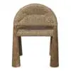 The classic Laredo Chair in teak is reimagined with faux variegated woven seagrass, creating a more spill-friendly version of the original design. It features tapered conical legs and a sunset back.
