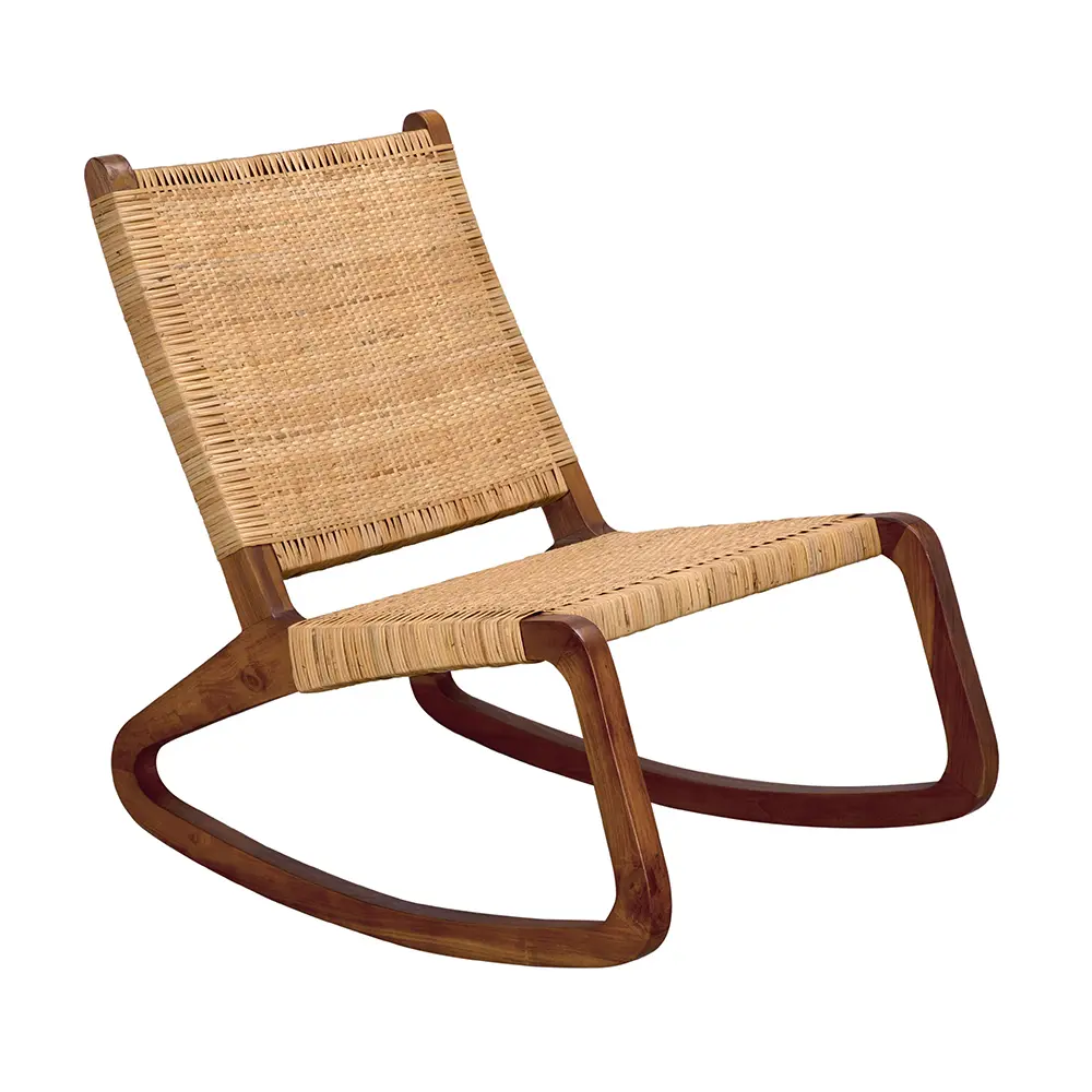 This simple rocking chair is expertly handcrafted from peeled rattan and naturally finished teak.