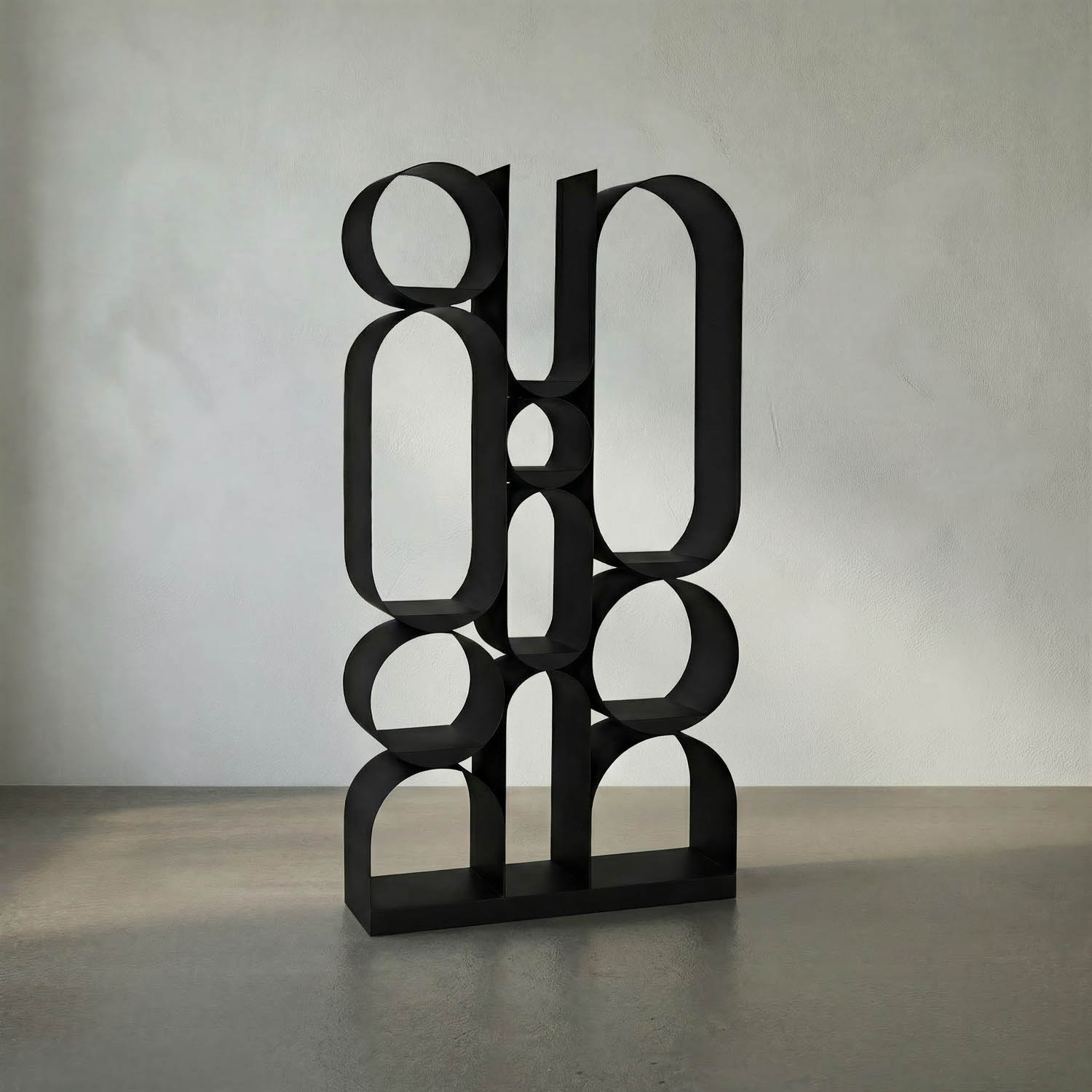 Our master metal artisans coax iron into curvaceous and geometric shapes, stacking them into a totem-inspired bookcase that is as much a sculptural statement as it is a practical shelving unit–a linear and graphic standout for any style space.