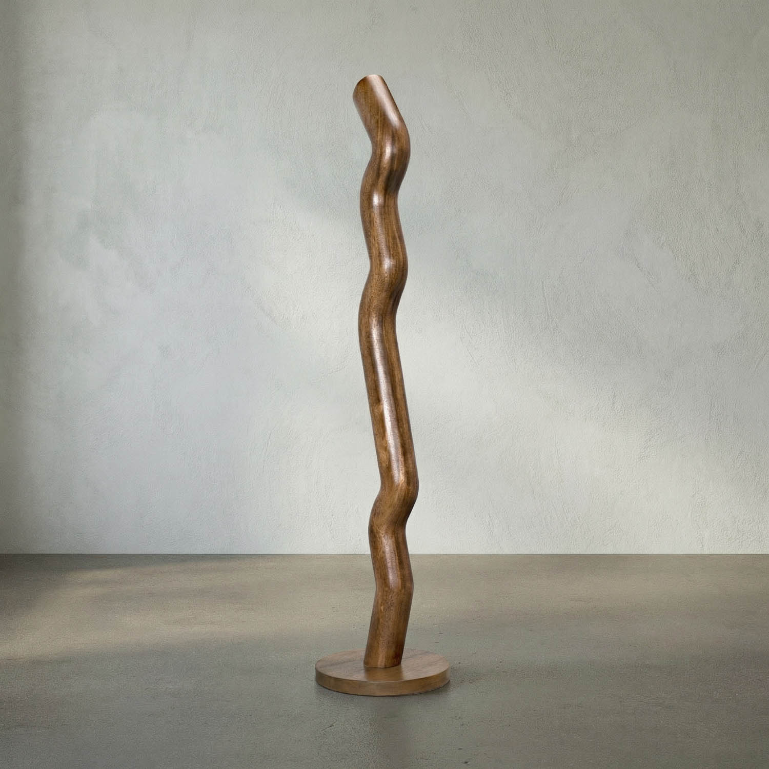 Handcrafted from solid walnut, a dramatic cylindrical column totem zigs and zags in this linear sculpture. Dark Walnut finish, walnut base.