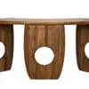 The Lobster Desk features a sculptural organic design. Made from walnut, its asymmetrical rounded top and bold, curved legs with circular cutouts elegantly blend artistic biomorphic forms with practicality.