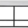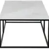 The Lois Coffee Table by Noir showcases a minimalist matte black iron frame that supports a stunning Bianco Crown marble top. Its clean lines and natural stone surface represent contemporary sophistication.