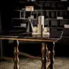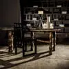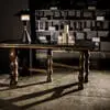 The Lucia Table Lamp features a bold, tiered design in matte black iron with antique brass accents. Inspired by Eastern architecture, it includes a frosted glass diffuser for soft, ambient light.
