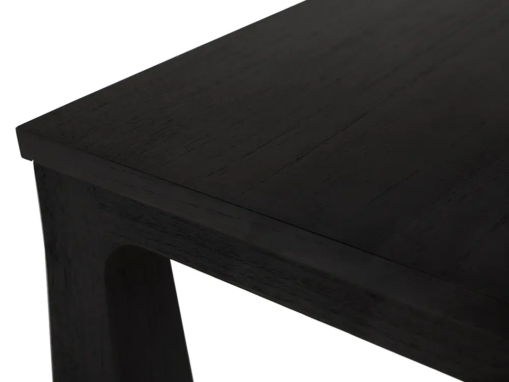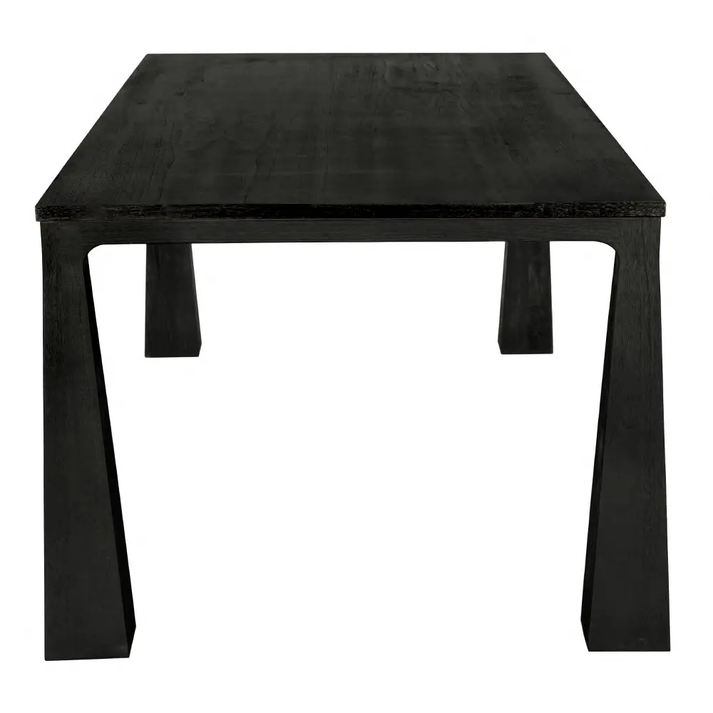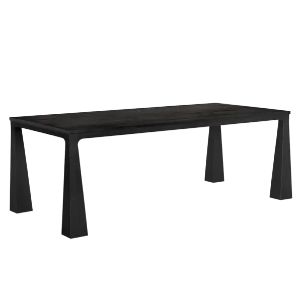 This elegant Charcoal Black dining table showcases a minimalist design with tapered, flared legs and a rectangular top. Its modern, cohesive form seamlessly combines contemporary aesthetics with subtle sculptural details, making it perfect for sophisticated interiors.