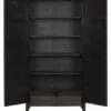 The Maharadscha Hutch showcases Pale-finished mahogany with subtle carvings and brass hardware set on a black base, merging grand scale with a refined, sculptural presence.
