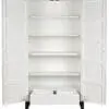 The Maharadscha Hutch showcases Solid White-finished mahogany with subtle carvings and brass hardware set on a black base, merging grand scale with a refined, sculptural presence.