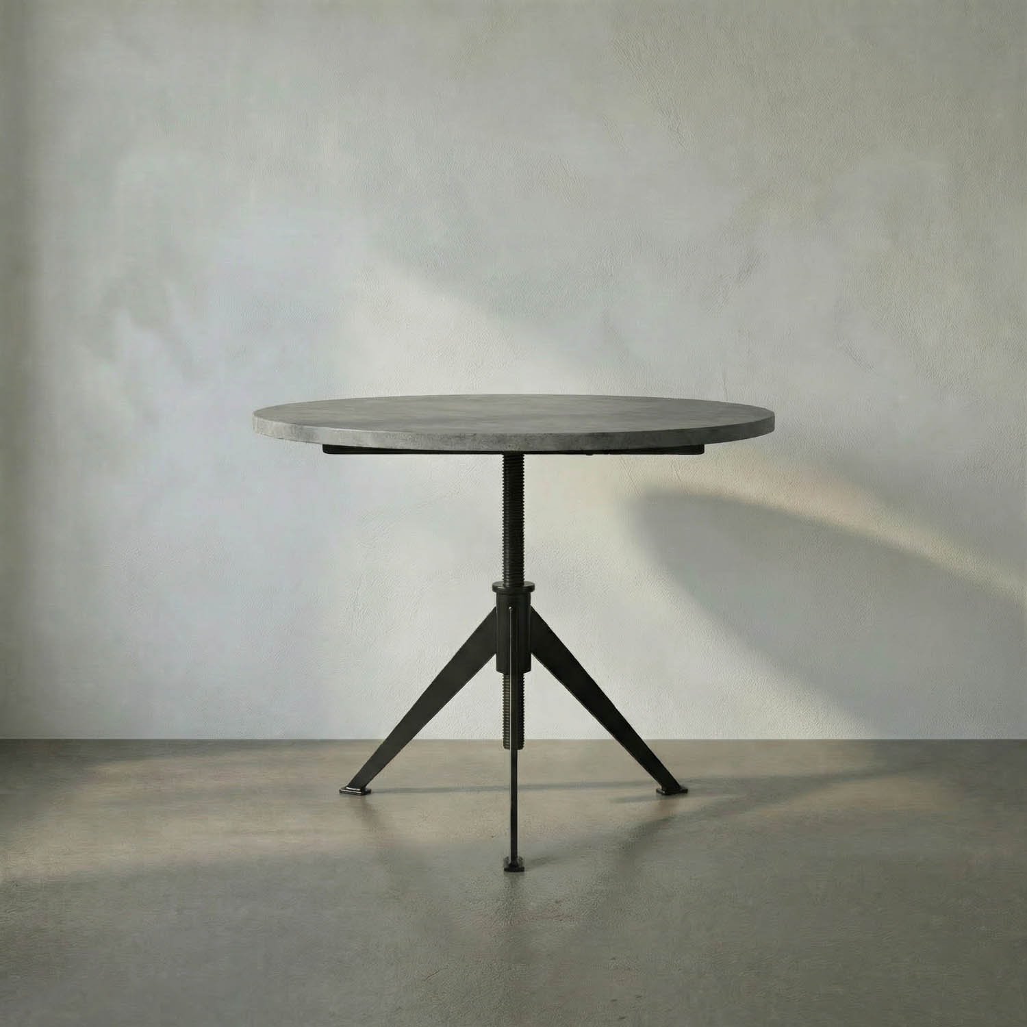 The Matilo Adjustable Table has a 30″ round Night Snow marble top, supported by a slender quadrupod iron base in Matte Black. Its height can be adjusted from 21″ to 35″, blending sculptural elegance with functional versatility.