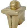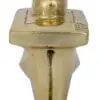 A small brass sculpture featuring a geometric, minimalist, and abstractly carved stylized seated figure.