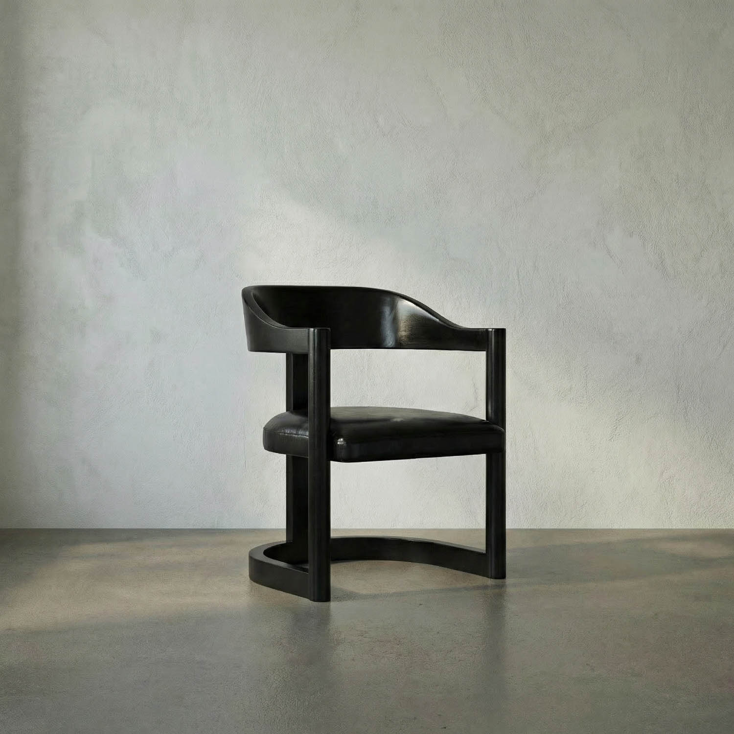 The McCormick Dining Chair combines strong and curvaceous lines with a rich, Charcoal Black finish that offers a subtle reveal of the wood grain.