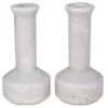 The Milos Candle Holder set features two hand-carved white marble pieces with rounded, organic silhouettes. Their smooth, taper-style holders and natural stone veining offer sculptural, understated elegance.