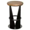 This swivel counter stool showcases a geometric, architectural silhouette with a round white oak seat. A circular footrest adds functional contrast, emphasizing industrial minimalism through sculptural tension and balance.