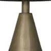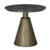 A round sculptural bistro or side table featuring a black marble top and a generously proportioned conical Aged Brass pedestal; it balances bold geometry with refined materials, evoking a sense of modern luxury and architectural minimalism.