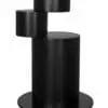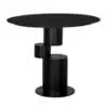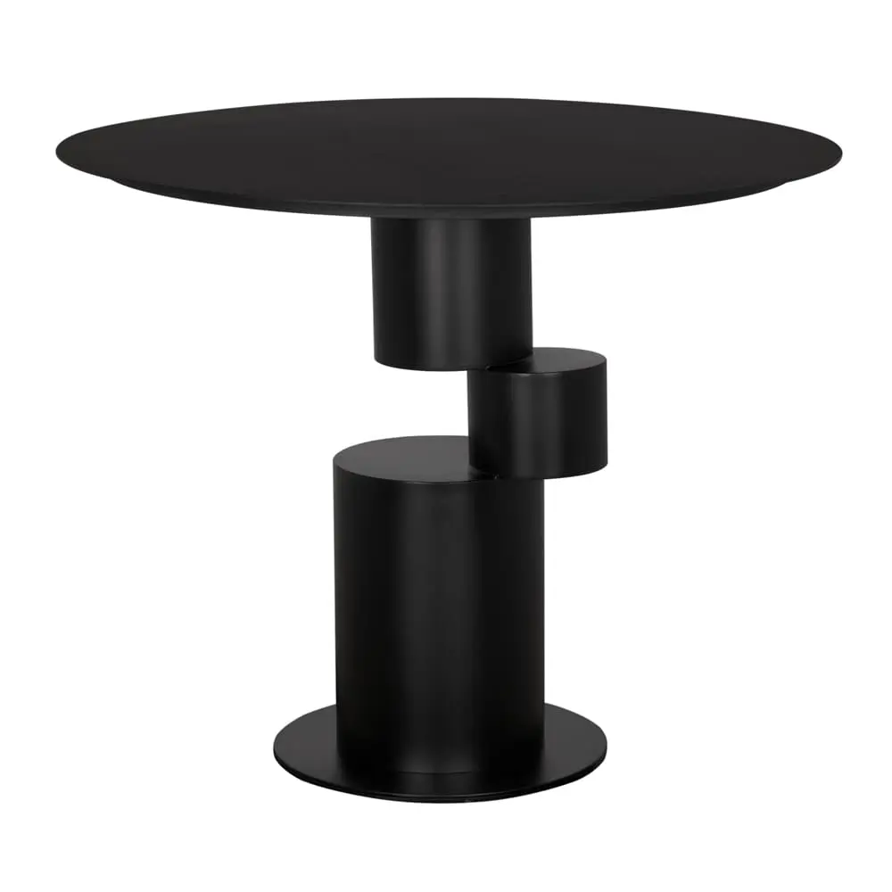 Matte-Black iron small round table featuring a stacked cylindrical pedestal base with a tapered design, combining minimalist sculpture and industrial influences for a sleek, modern dining or entry table.