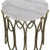 A sculptural side table featuring a Bianco Crown marble top, supported by a gently curved base in a softly burnished Antique Brass finish. This piece is designed for modern, transitional, and mid-century modern interiors, blending natural stone with warm metallic elegance.