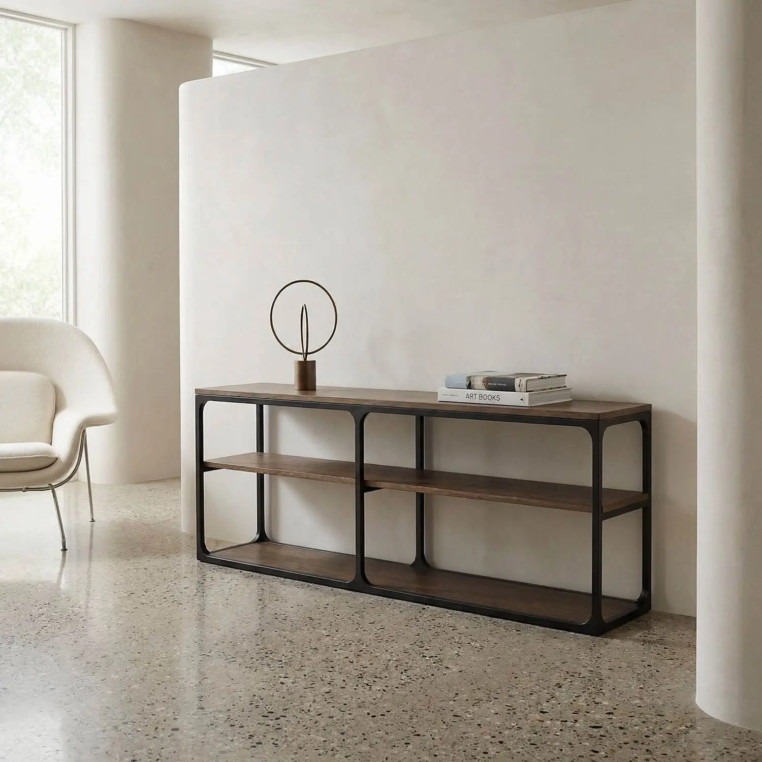 Novie Console, Large, Black Iron with Dark Walnut