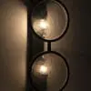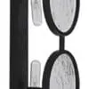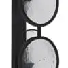 The Ordo Sconce by Noir features four vertically arranged diffused glass discs set within a matte black iron frame, creating a balanced blend of soft illumination and industrial aesthetics.